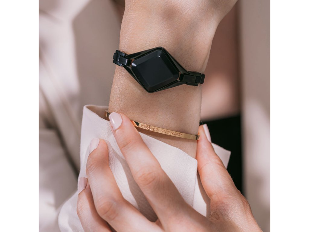 Výjimečný fitness měřič zaměřený na zdravý životní styl v kombinaci pouzdra v černé barvě s černým kamenem a černým řemínkem s černými sponamiDoplňkové parametry