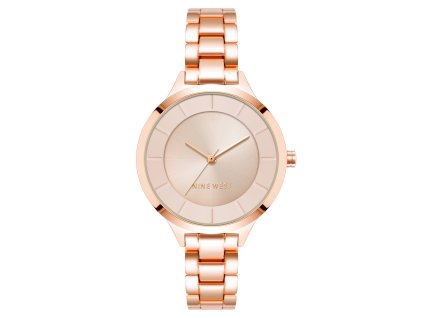 Dámské hodinky Nine West v celkovém růžovozlatém tónu s elegantním číselníkem bez číslic a...