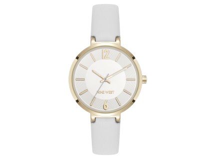 Dámské hodinky Nine West s bílým řemínkem, kulatým pouzdrem ve zlaté barvě a elegantním...