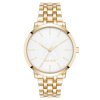 Dámské hodinky Nine West se zlatým ocelovým tahem, bílým číselníkem a elegantním kulatým...