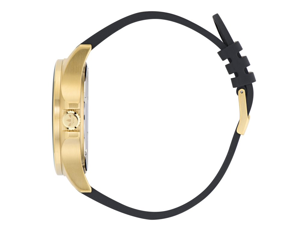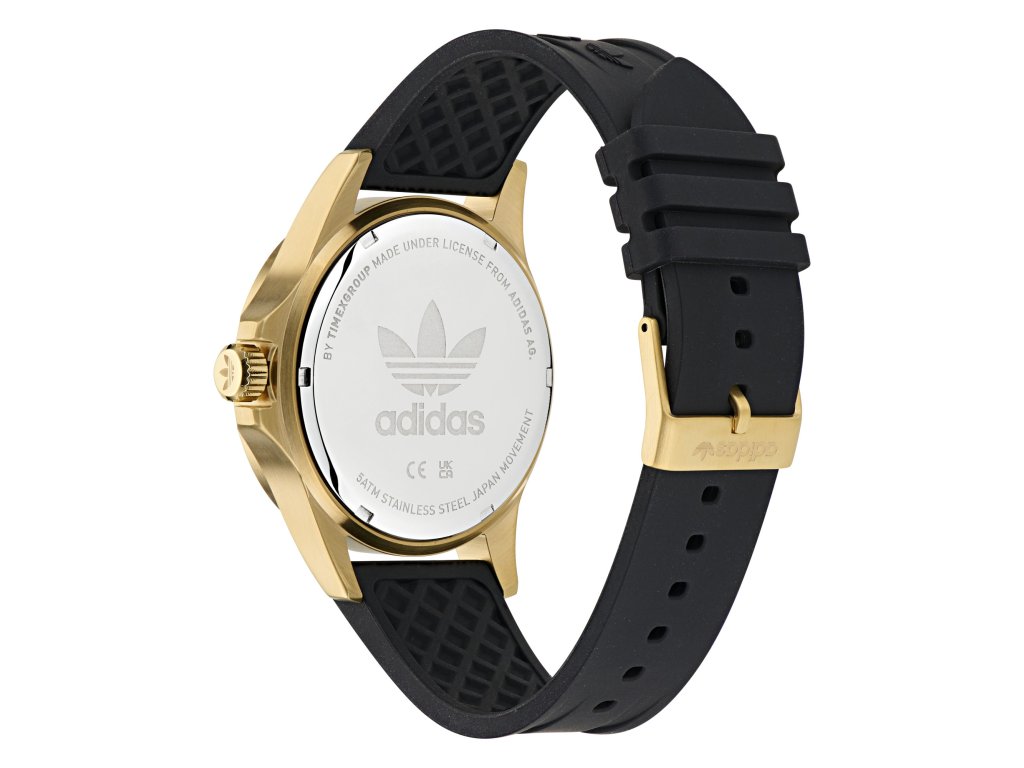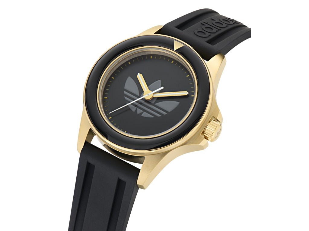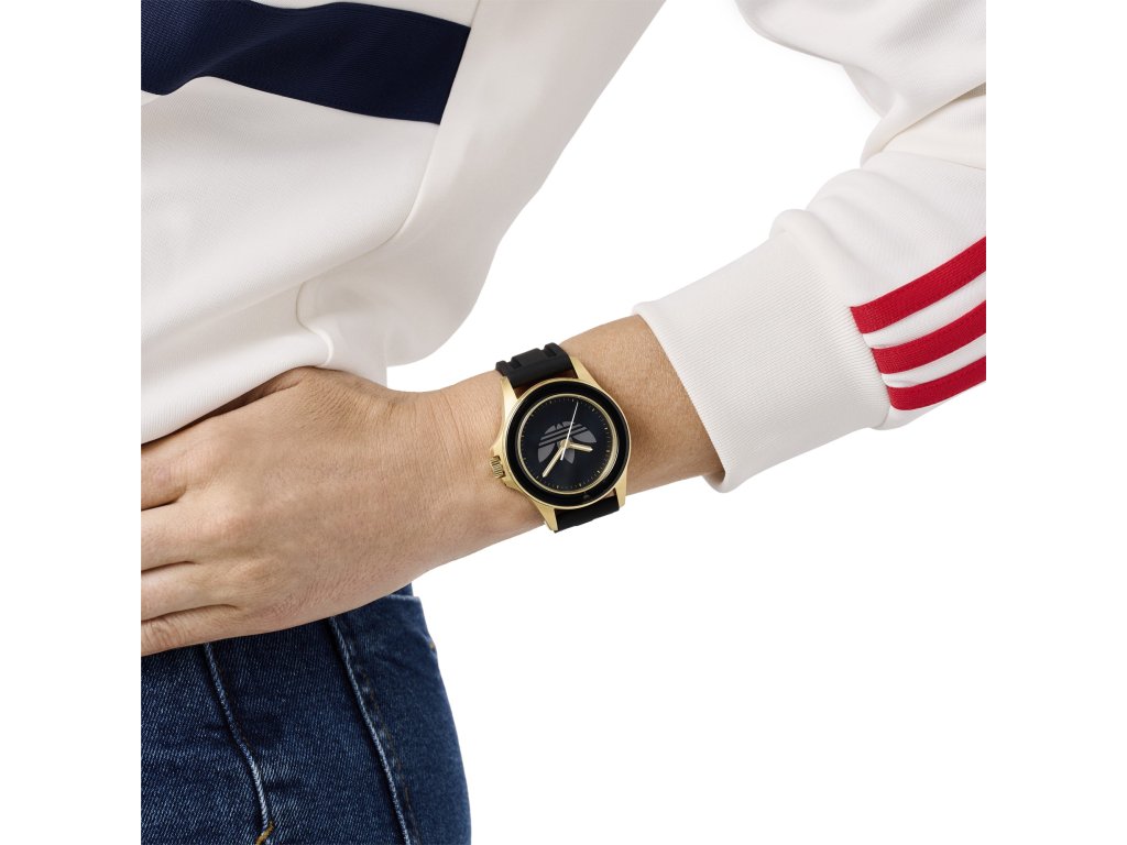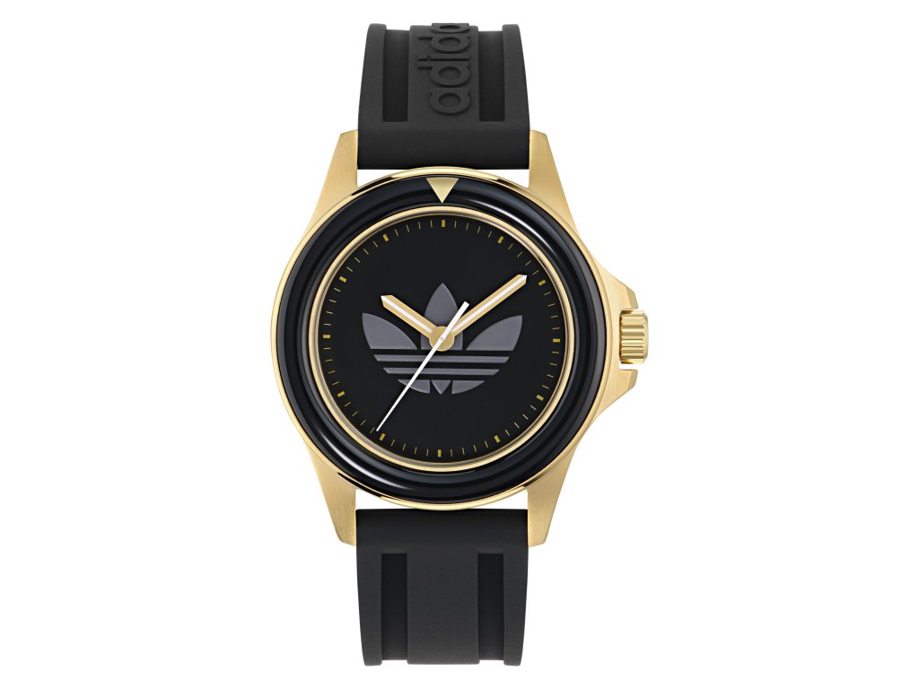 Unisex hodinky Adidas Expression One AOFH24507 zaujmou minimalistickým číselníkem s výrazným logem a atraktivním kontrastem mezi černým základem a zlatým pouzdrem. Kulatý tvar drží klasiku, ale celek působí svěže a moderně.