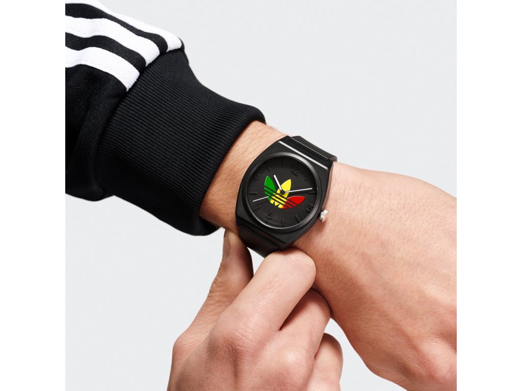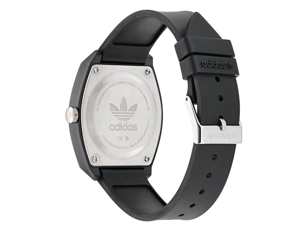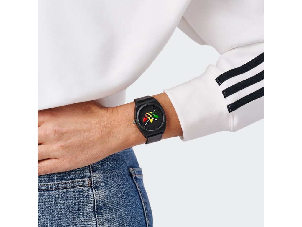 Černý základ, barevný podpis. Unisex hodinky Adidas Project Two GRFX AOST24071 jsou minimalistické, ale přitom naprosto nepřehlédnutelné.