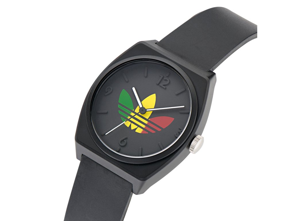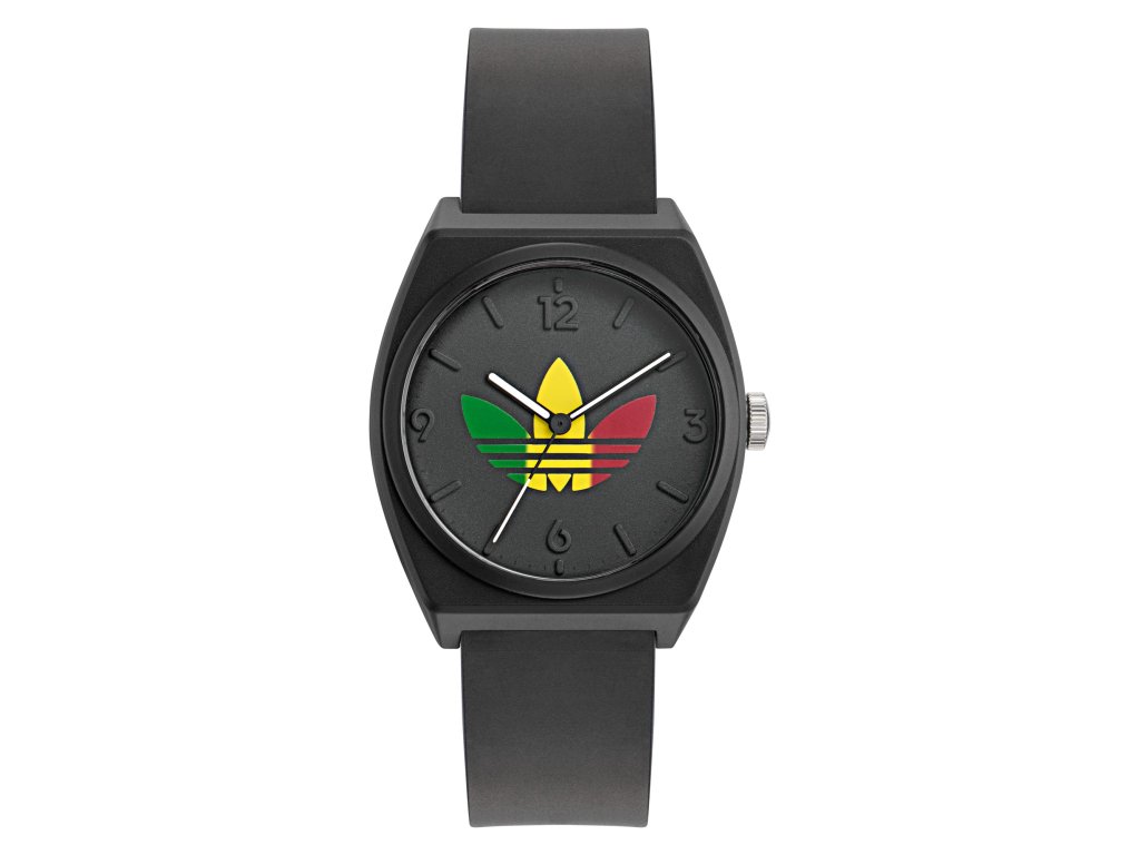 Černý číselník zdobí ikonické logo v rastafariánských, jamajských barvách, které celému modelu dodává výraz a osobnost.