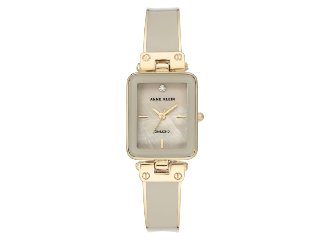 Tyto hodinky Anne Klein zaujmou elegantním tvarovým provedením a decentními barvami. Béžový číselník je zdoben diamantem na pozici dvanácté hodiny, což hodinkám dodává sofistikovaný vzhled se šperkovým detailem.