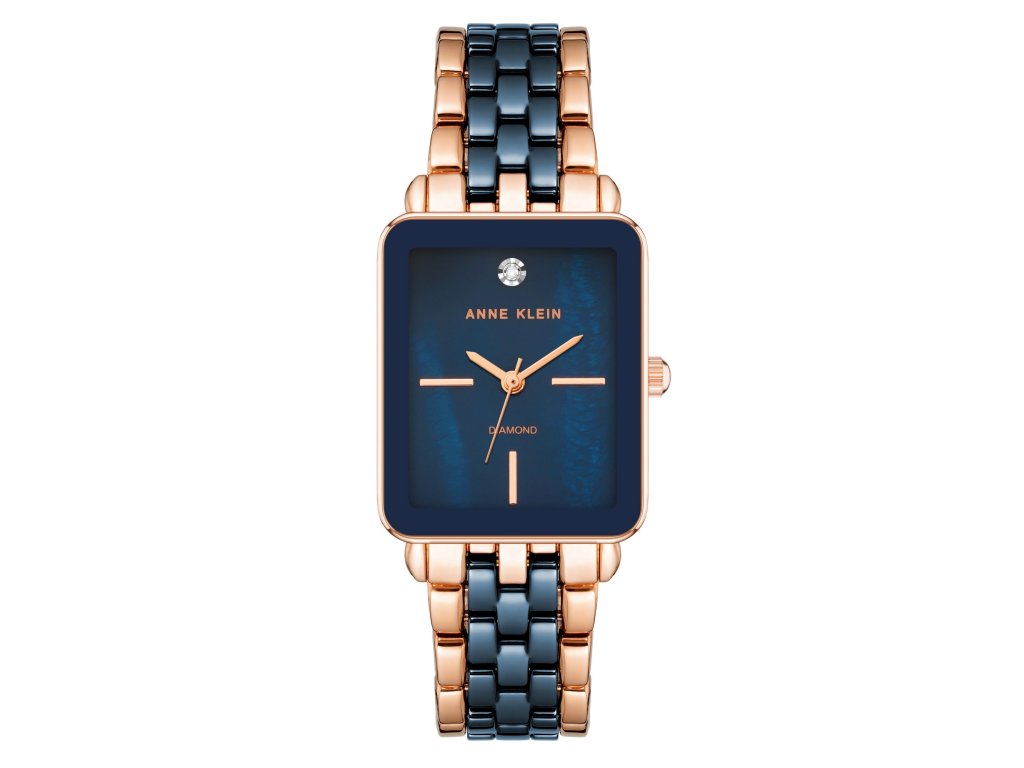 Hodinky Anne Klein v sobě spojují stylový geometrický tvar a šperkový detail. Modrý číselník s diamantem na dvanácté hodině působí elegantně a výrazně zároveň, ideální pro ženy s osobitým stylem.