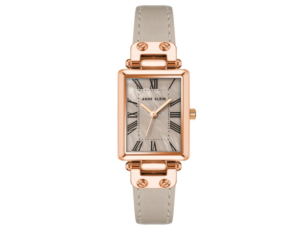 Tyto hodinky Anne Klein zaujmou na první pohled svým neobvyklým hranatým pouzdrem a jemně laděnou barevností. Béžový číselník v kombinaci s růžově zlatým kovem působí elegantně, svěže a velmi ženským dojmem.