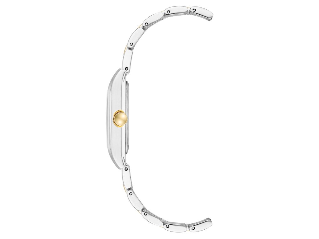 Model má bicolor kovový tah v kombinaci stříbrné a zlaté barvy, který skvěle ladí s hranatým pouzdrem ve stříbrném provedení a čistým stříbrným číselníkem. Design je jednoduchý, přehledný a působí velmi vkusně. Minerální sklo chrání hodinky před poškrábáním a spolehlivý strojek Quartz se postará o přesný čas. Ideální volba pro ženy, které preferují jemnou eleganci v praktickém každodenním provedení.