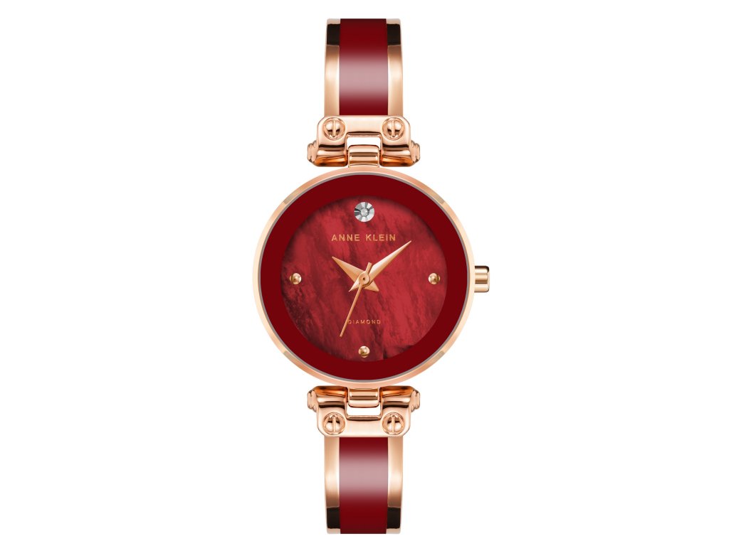 Hodinky Anne Klein v sobě spojují odvahu, eleganci i šperkový detail. Sytě červený číselník zdobí diamant na pozici dvanácté hodiny, což dodává celému modelu výraz a ženský půvab.