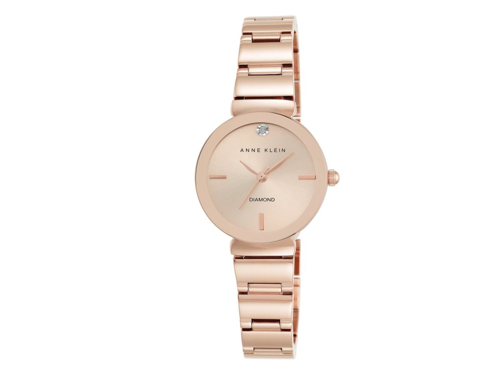 Hodinky Anne Klein v jednotném růžově zlatém tónu působí mimořádně jemně, stylově a sofistikovaně. Číselník zdobí diamant na pozici dvanácté hodiny, který dodává modelu decentní lesk a šperkový výraz.