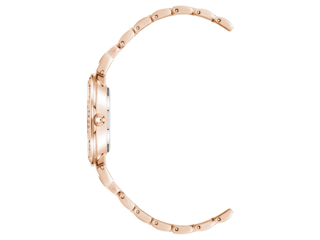 Hodinky Anne Klein kombinují klasické prvky s moderní ženskostí. Bílý číselník je ozdoben jemnými krystaly, které v kombinaci s růžově zlatým provedením působí luxusně a jemně zároveň.