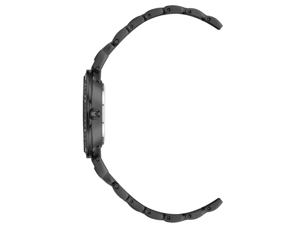 Model má černý kovový tah a kulaté pouzdro v jednotné černé barvě, které ladí s černým číselníkem osazeným krystaly namísto klasických indexů. Minerální sklo chrání hodinky před poškrábáním, zatímco přesný strojek Quartz zajišťuje jejich spolehlivý chod. Ideální volba pro ženy, které hledají sofistikovaný doplněk v tmavém, ale elegantním stylu.