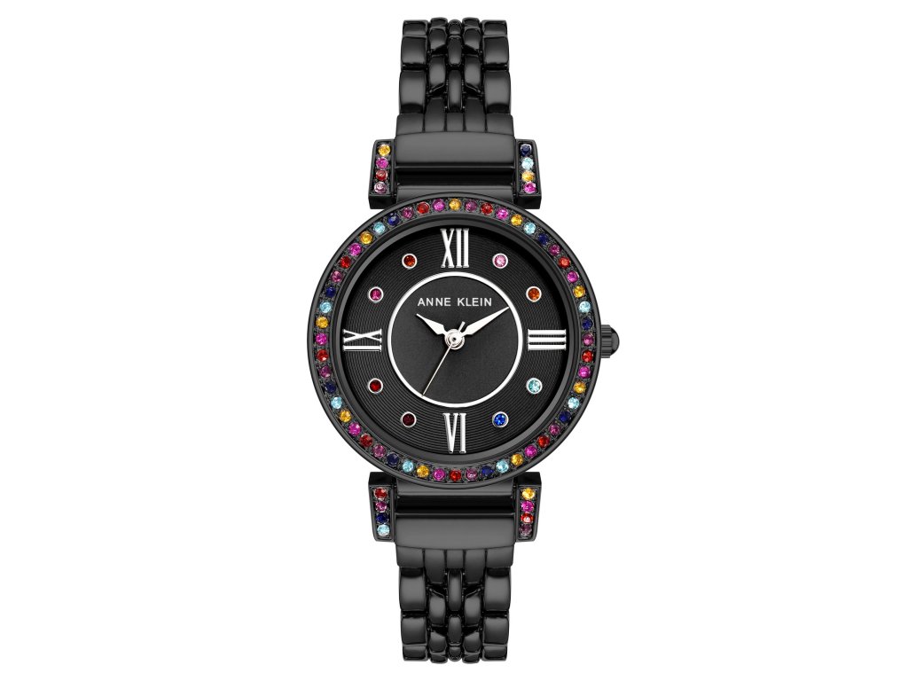 Hodinky Anne Klein v celkovém černém provedení působí stylově, elegantně a zároveň sebevědomě. Černý číselník zdobený jemnými krystaly dodává modelu šperkový lesk a vytváří výrazný kontrast s celkovou tmavou estetikou.