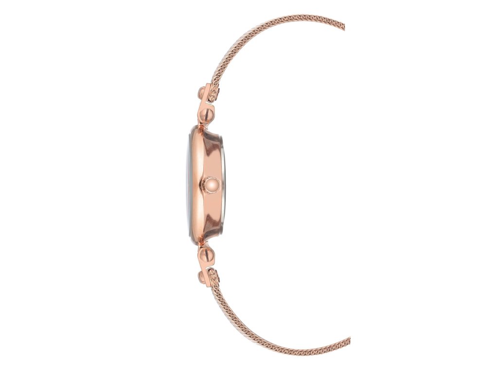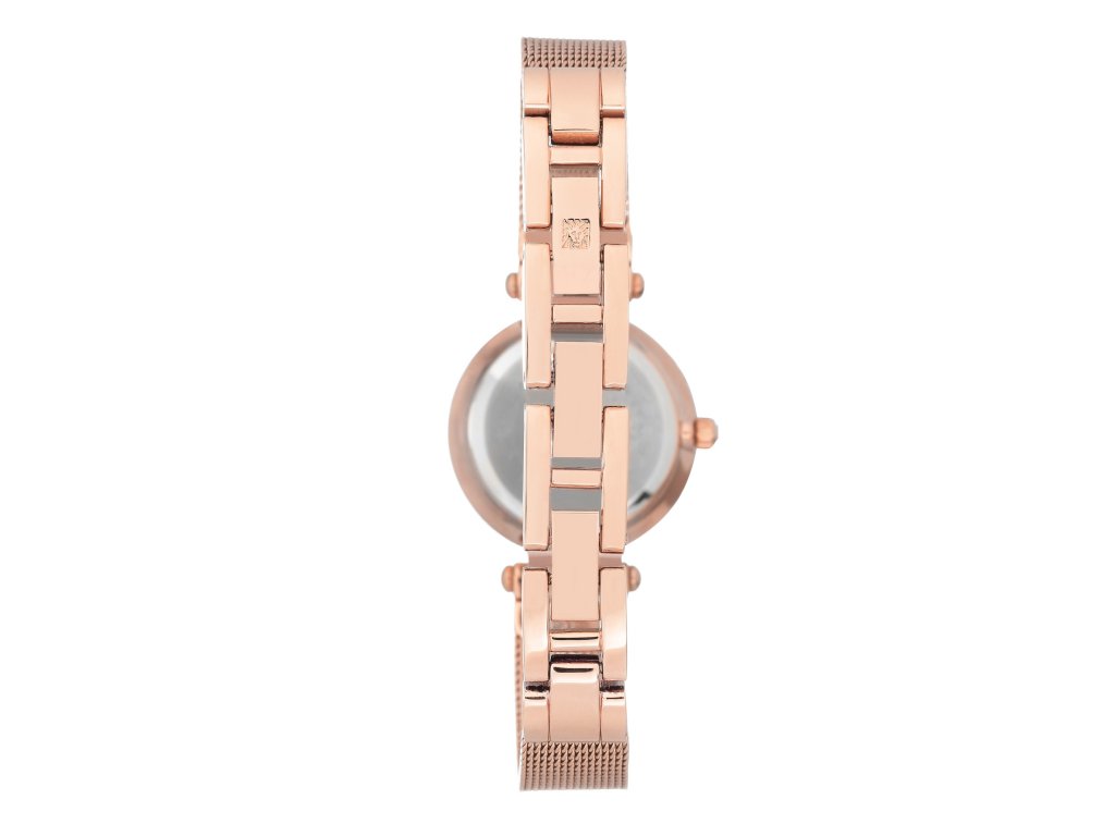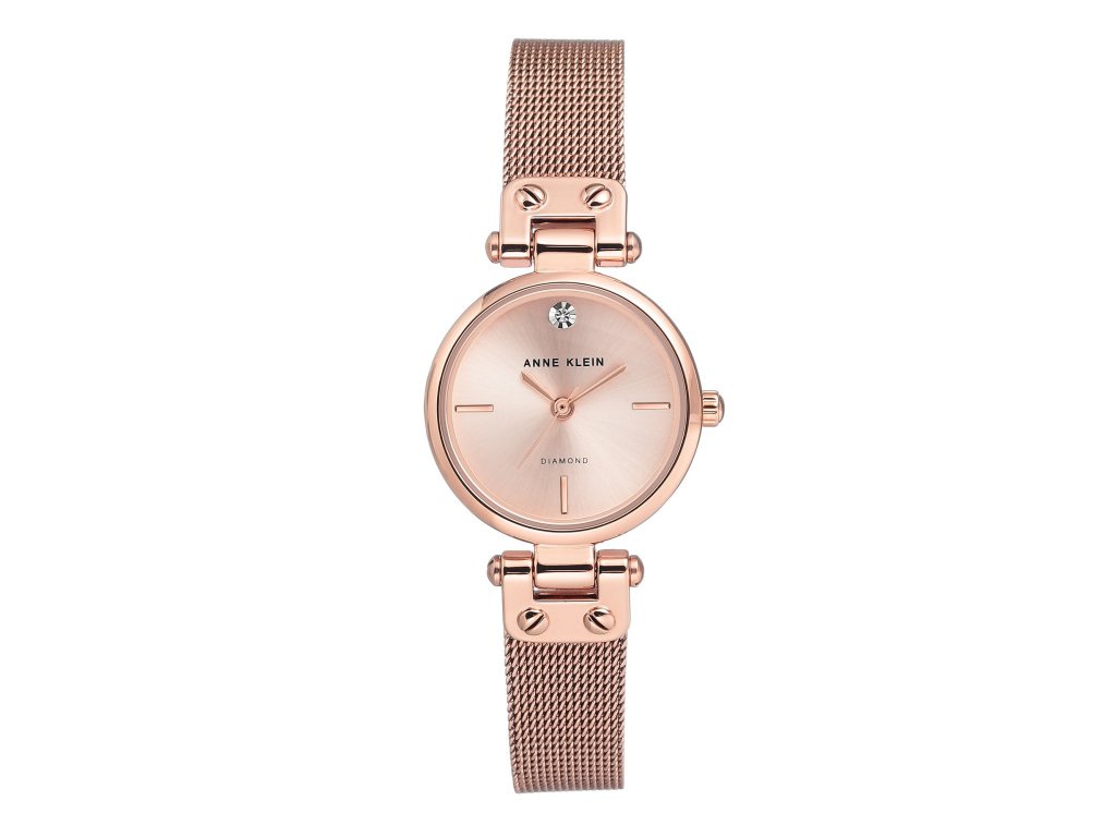 Růžovozlaté hodinky Anne Klein zaujmou svou ženskostí i šperkovým detailem. Minimalistický číselník v růžovozlatém tónu zdobí diamant na pozici dvanácté hodiny, který dodává modelu eleganci i výjimečnost.