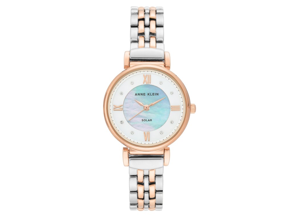 Hodinky Anne Klein spojují sofistikovaný vzhled s moderní technologií. Perleťový číselník zdobený krystaly a solární napájení bez nutnosti výměny baterie dělají z tohoto modelu stylového a praktického společníka pro každý den.