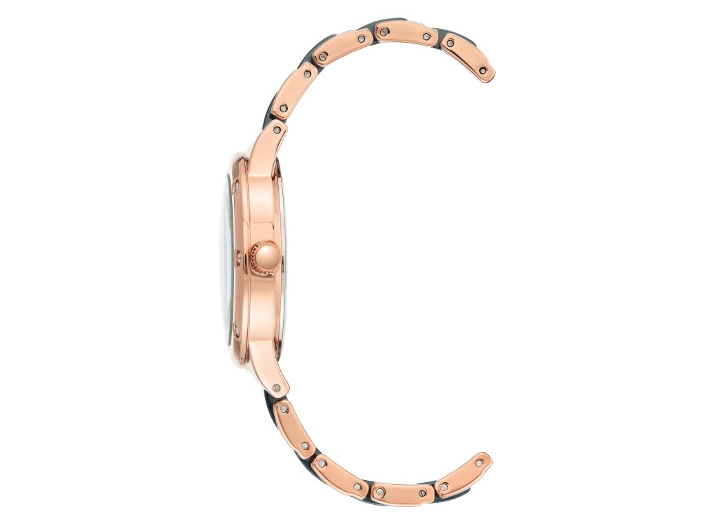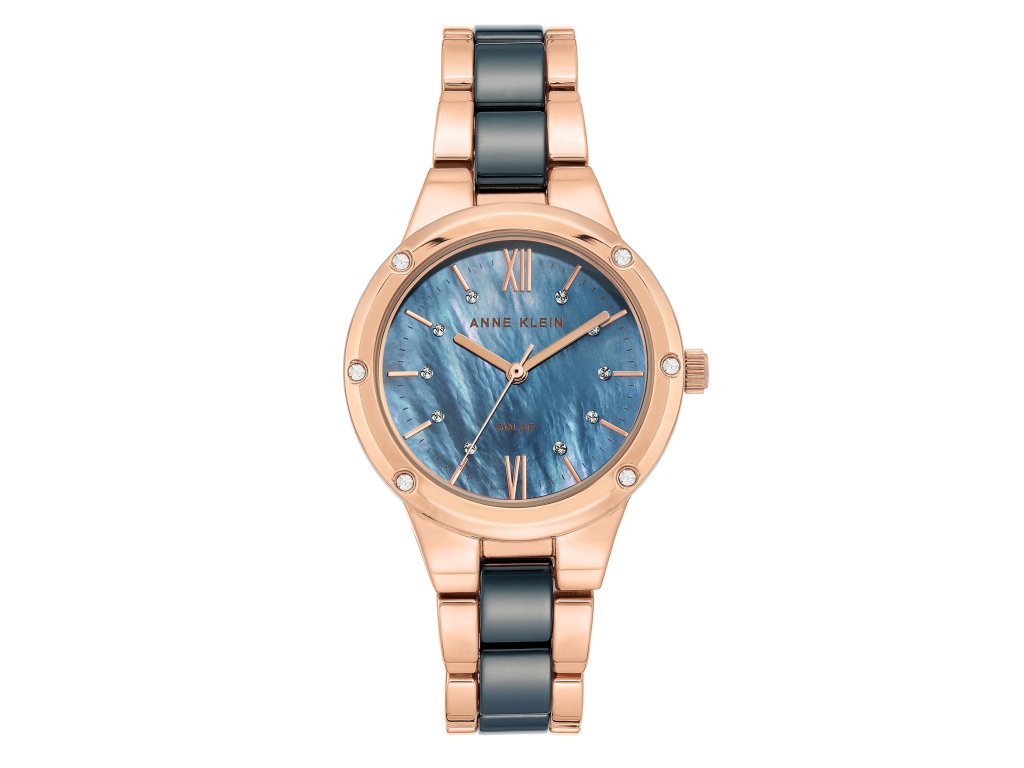 Tyto dámské hodinky Anne Klein zaujmou spojení moderní technologie a sofistikovaného vzhledu. Modrý číselník s krystaly září v kontrastu k růžovozlatému pouzdru, zatímco solární napájení nabízí pohodlí bez nutnosti výměny baterie.