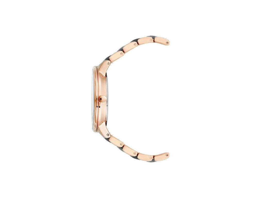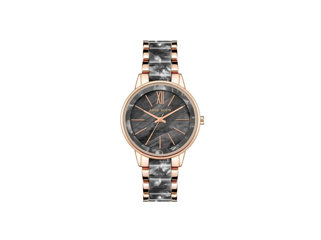 Jemné hodinky s detaily v růžovozlaté a šedé barvě. Značka Anne Klein, nesoucí jméno známé americké vizionářky, přináší všem ženám možnost sebevyjádření pomocí něčeho tak praktického, jako jsou hodinky. Perleťový číselník v šedém odstínu doplňují rose gold indexy v podobě tyčinek. Pásek je tvořen kombinací růžovozlatého kovu a šedého akrylu s mramorovým efektem. Hodinky ochraňuje minerální sklo a pouzdro o rozměru 37 mm. Snadné zapínání zajišťuje klenotnická přezka.Doplňkové parametry