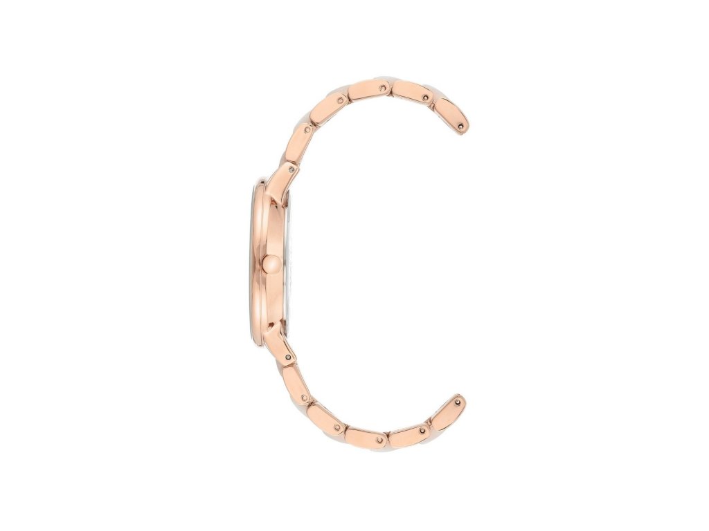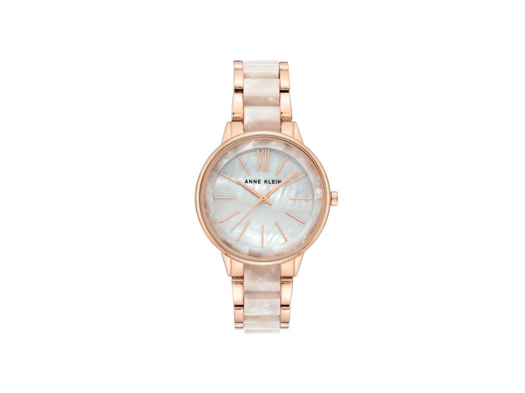 Decentní hodinky v odstínech růžové a rose gold. Značka Anne Klein, nesoucí jméno známé americké vizionářky, přináší všem ženám možnost sebevyjádření pomocí něčeho tak praktického, jako jsou hodinky. Perleťový číselník doplňují růžovozlaté indexy v podobě tyčinek. Pásek je tvořen kombinací kovu v rose gold barvě a akrylu s mramorovým efektem. Hodinky ochraňuje minerální sklo a pouzdro o rozměru 37 mm. Snadné zapínání zajišťuje klenotnická přezka.Doplňkové parametry