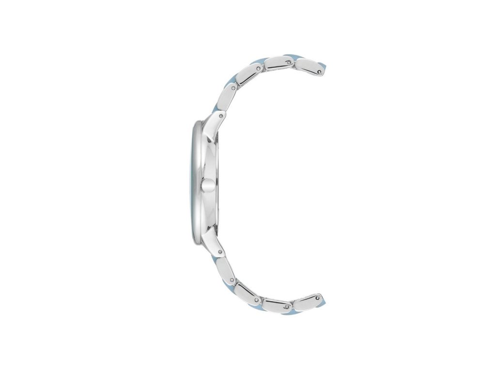 Jemné hodinky v bleděmodré barvě se stříbrnými detaily. Značka Anne Klein, nesoucí jméno známé americké vizionářky, přináší všem ženám možnost sebevyjádření pomocí něčeho tak praktického, jako jsou hodinky. Světle modrý číselník doplňují stříbrné indexy v podobě tyčinek. Pásek je tvořen kombinací kovu a modrého akrylu s třpytivým efektem. Hodinky ochraňuje minerální sklo a pouzdro o rozměru 37 mm. Snadné zapínání zajišťuje klenotnická přezka.Doplňkové parametry