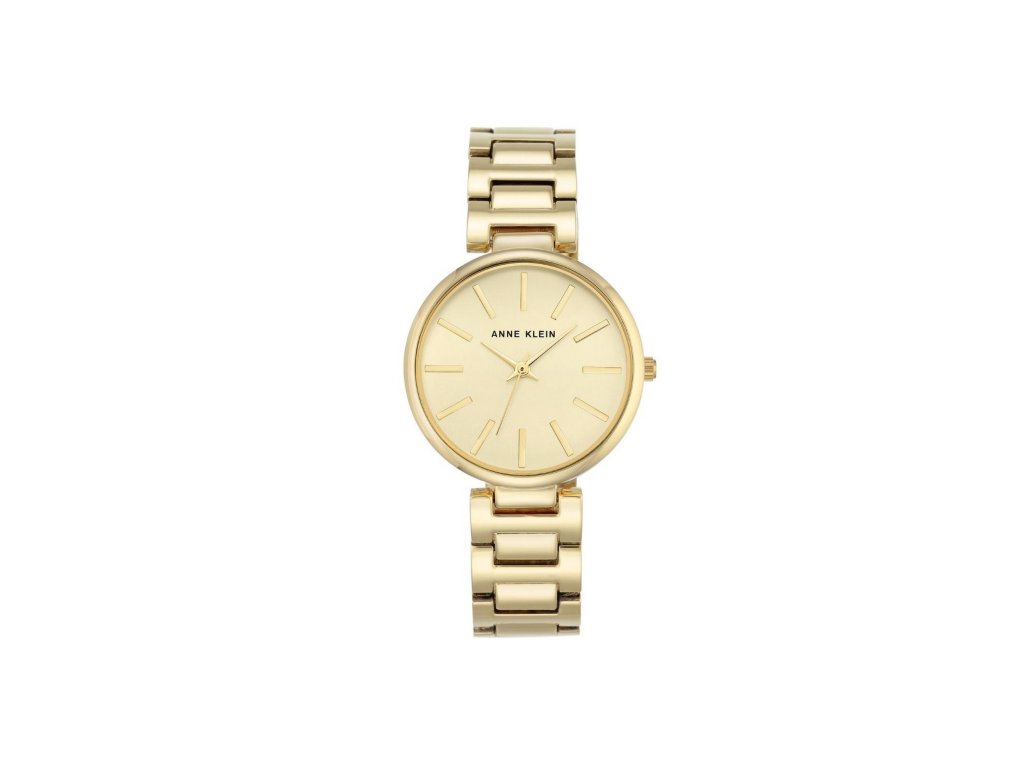 Elegantní pozlacené hodinky s kovovým páskem. Značka Anne Klein, nesoucí jméno známé americké vizionářky, přináší všem ženám možnost sebevyjádření pomocí něčeho tak praktického, jako jsou hodinky. Číselník v odstínu champagne zdobí indexy ve formě tyčinek. Ochranu zajišťuje minerální sklo a pozlacené pouzdro o rozměru 34 mm. Snadné zapínání pásku zajišťuje klenotnická přezka.Doplňkové parametry