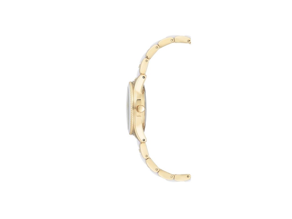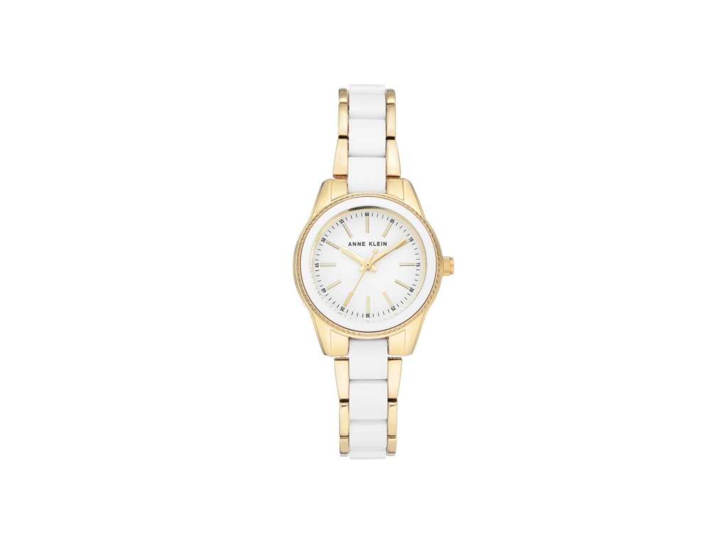 Jemné bílé hodinky s detaily ve zlaté barvě. Značka Anne Klein, nesoucí jméno známé americké vizionářky, přináší všem ženám možnost sebevyjádření pomocí něčeho tak praktického, jako jsou hodinky. Bílý číselník doplňují indexy v podobě tyčinek. Pásek je tvořen kombinací pozlaceného kovu a bílého akrylu. Hodinky ochraňuje minerální sklo a pouzdro o rozměru 30 mm. Snadné zapínání zajišťuje klenotnická přezka.Doplňkové parametry