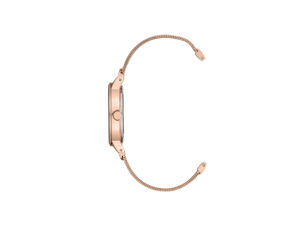 Minimalistické hodinky s kovovým páskem v rose gold provedení. Značka Anne Klein, nesoucí jméno známé americké vizionářky, přináší všem ženám možnost sebevyjádření pomocí něčeho tak praktického, jako jsou hodinky. Světlý číselník je korunovaný diamantem. Ochranu zajišťuje minerální sklo a růžovozlaté pouzdro o rozměru 30 mm. Snadné zapínání niklového pásku zajišťuje klenotnická přezka.Doplňkové parametry