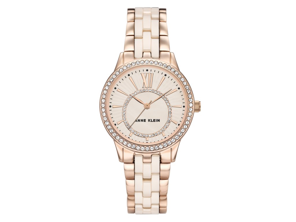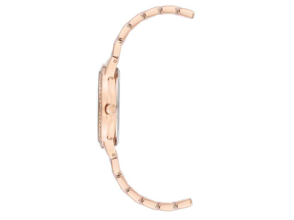Hodinky Anne Klein v něžném růžovém tónu přinášejí jemnost, eleganci a šperkový vzhled v jednom. Růžový číselník zdobený krystaly dodává hodinkám romantický nádech a přirozený lesk, ideální pro každodenní nošení i slavnostní chvíle.