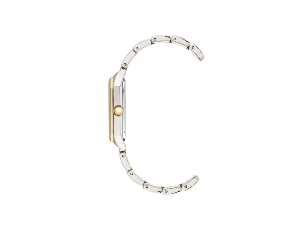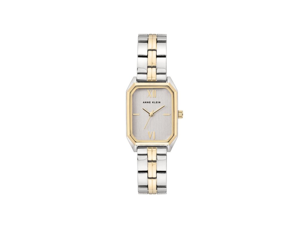 Jemné hodinky s hranatým číselníkem a kovovým páskem. Značka Anne Klein, nesoucí jméno známé americké vizionářky, přináší všem ženám možnost sebevyjádření pomocí něčeho tak praktického, jako jsou hodinky. Světlý stříbrný číselník s indexy v podobě tyčinek a římských číslic chrání minerální sklo a pouzdro v rozměrech 24 mm a 35 mm. Celek dotváří stříbrný kovový pásek se zlatým detailem a klenotnickou sponou.Doplňkové parametry