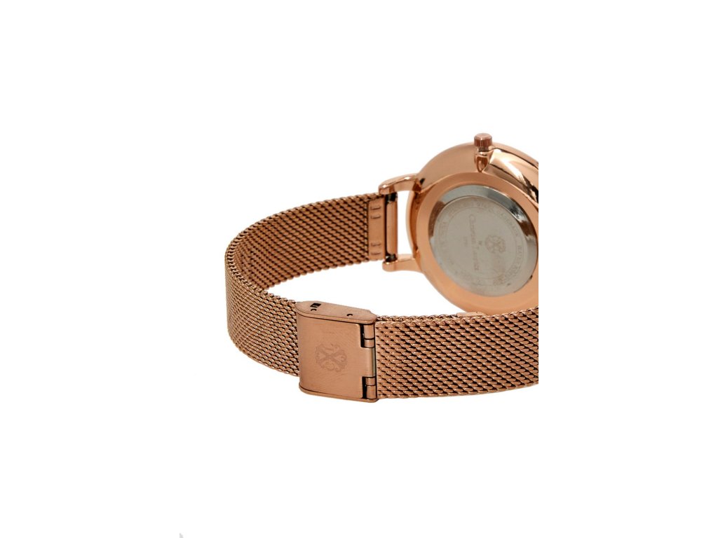 Dámské hodinky s celorůžovým zlacením, meshovým páskem a výrazně modrým číselníkem s indexy.Doplňkové parametry