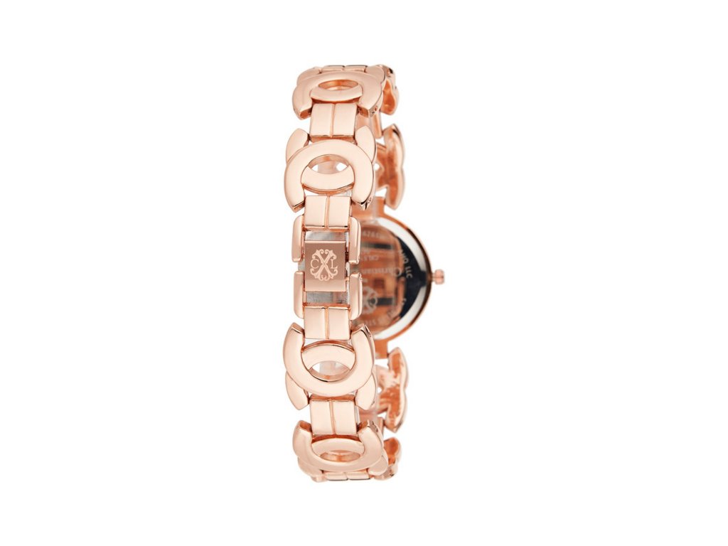 Model je vybaven přesným strojkem Quartz a chráněn minerálním sklem. Kovový tah v růžovozlaté barvě zdobený krystaly ladí s kulatým pouzdrem v růžovozlatém tónu doplněném třpytivým lemem. Číselník v obdobném barevném provedení dotváří harmonický, luxusní vzhled, díky němuž tyto hodinky působí jako elegantní šperk vhodný pro speciální i každodenní příležitosti.