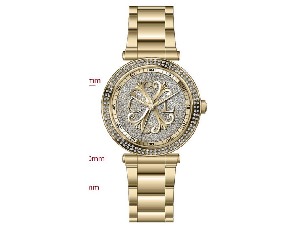 Kovový tah ve zlaté barvě ladí s kulatým pouzdrem v elegantním zlatém tónu s dvojitou řadou třpytivých krystalů, jež dodávají modelu výjimečně šperkový charakter. Číselník v jemném zlatém odstínu krásně navazuje na celkový koncept a zvýrazňuje efektní střed s logem. Model je vybaven přesným strojkem Quartz a chráněn minerálním sklem.