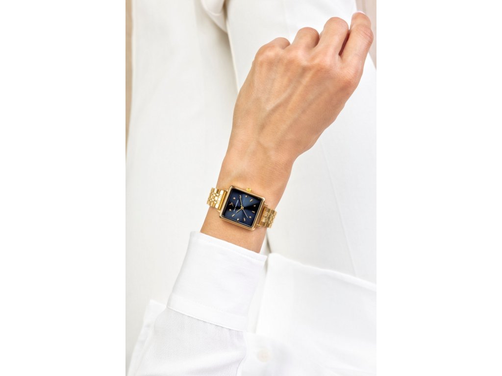 Modrý číselník v hranatém tvaru přináší atraktivní kontrast k ocelovému tahu ve zlaté barvě, který působí luxusně a stylově. Pouzdro ve zlatém tónu harmonicky ladí s tahem a zvýrazňuje čistotu linií. Minerální sklo chrání číselník při každodenním nošení. Tyto hodinky jsou ideálním doplňkem pro ženy, které chtějí spojit eleganci s výrazným barevným akcentem.