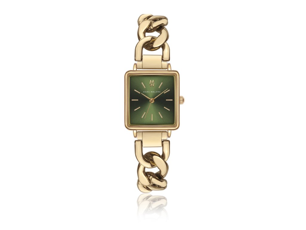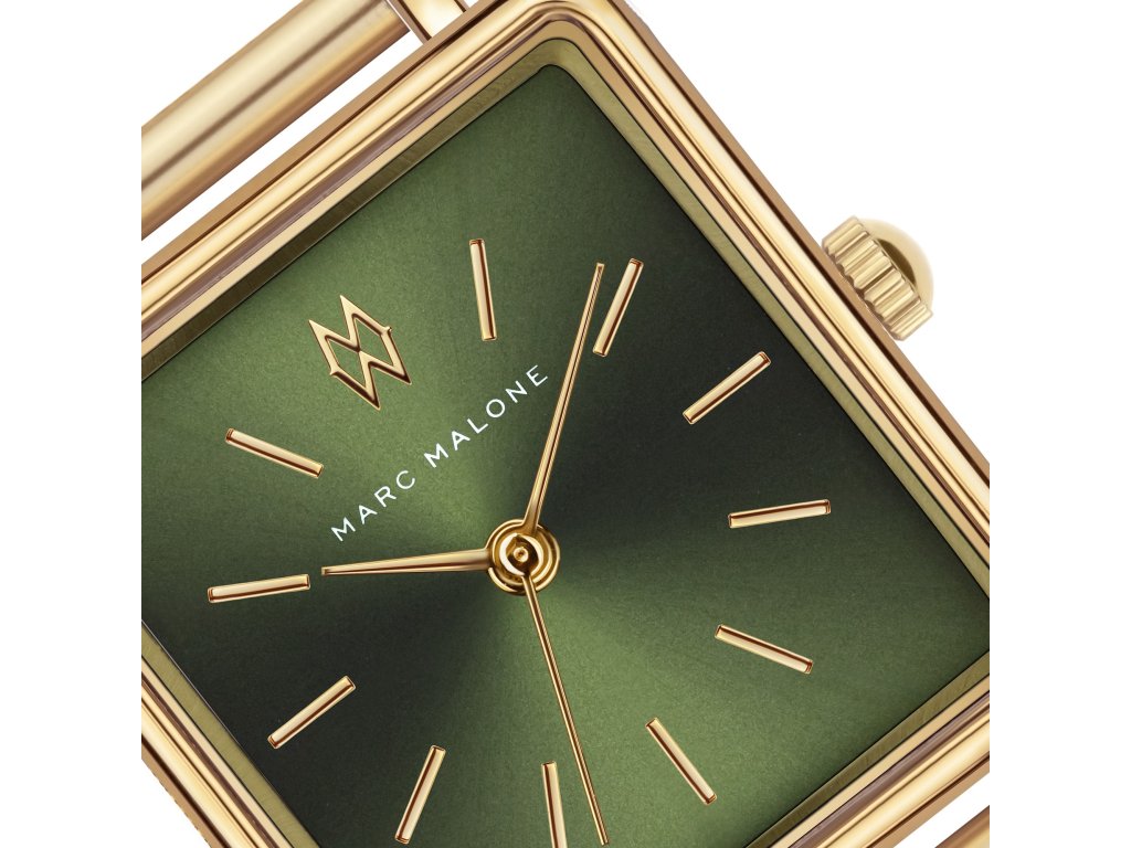 Minimalismus v moderní barevné kombinaci. Dámské hodinky Marc Malone CDR-5614GQ zaujmou spojením elegantního zlata a hluboké zelené. Hranaté pouzdro dodává modelu moderní geometrii, zatímco čistý číselník podtrhuje jeho minimalistický charakter.
