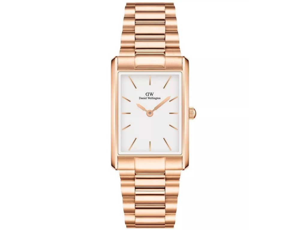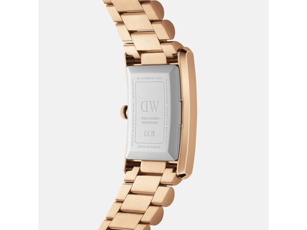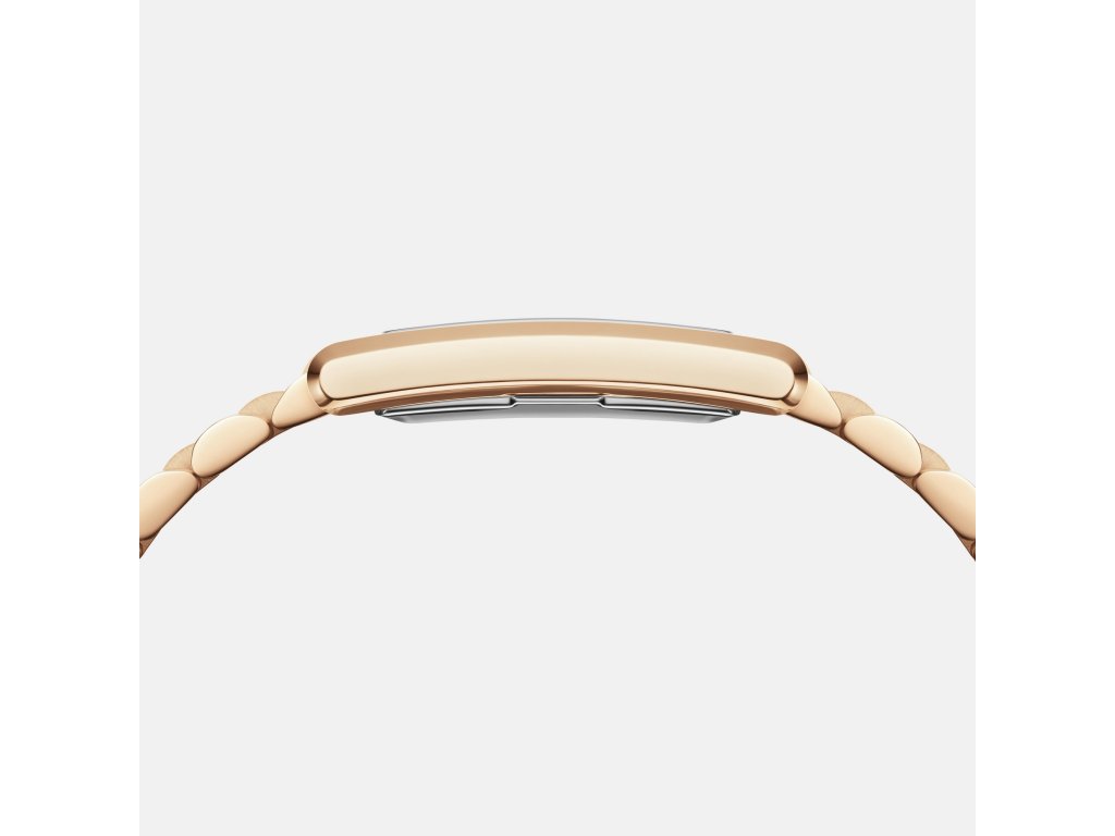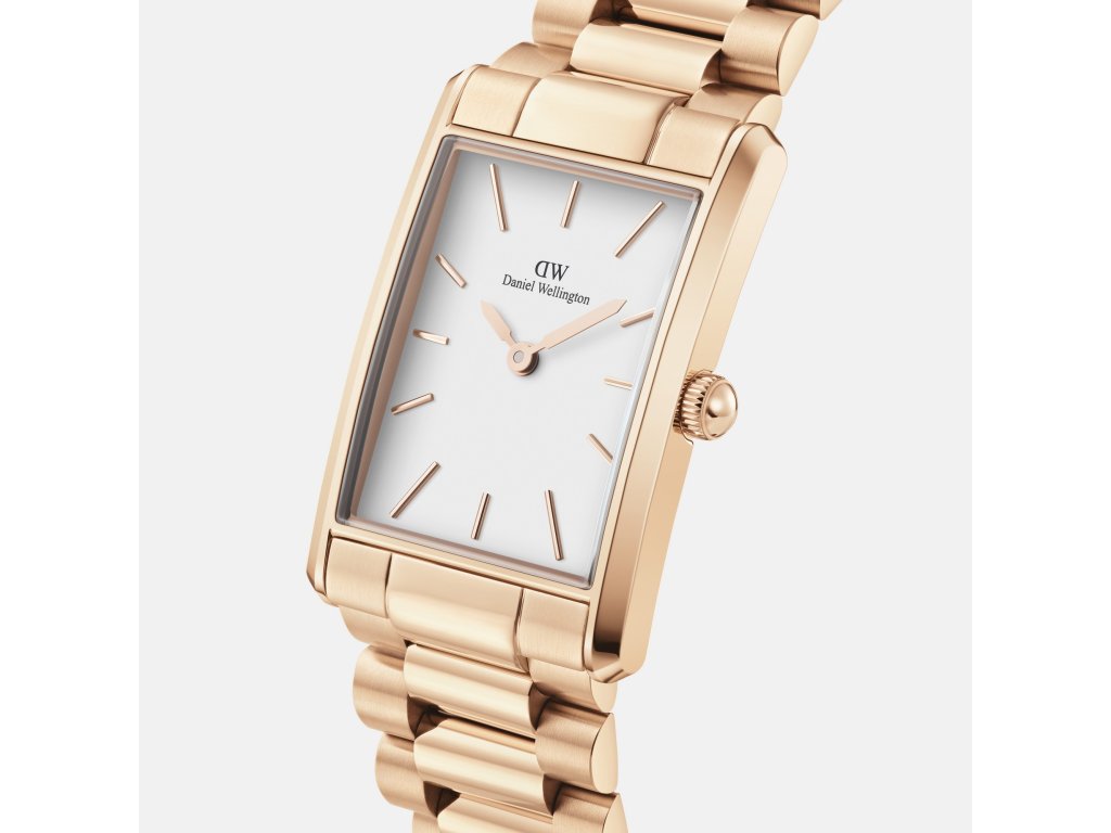 Dámské hodinky Bound od značky Daniel Wellington jsou ztělesněním moderní elegance s architektonickým nádechem. Hranaté pouzdro v růžovozlaté barvě plynule navazuje na tříčlánkový ocelový tah, čímž vzniká dokonale integrovaný tvar, který přirozeně kopíruje linii zápěstí.
