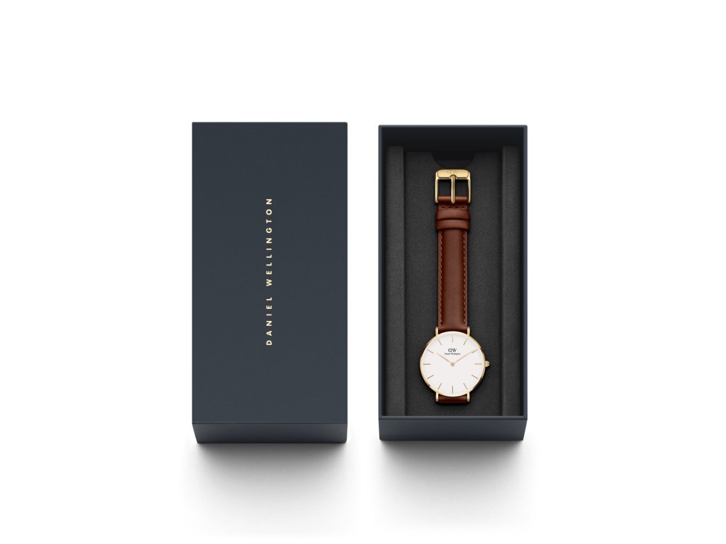 Dámské hodinky Daniel Wellington přinášejí minimalistický design v tradičně elegantním pojetí. Kombinace hnědého koženého řemínku, pozlaceného pouzdra a bílého číselníku tvoří nadčasový doplněk, který se snadno kombinuje s jakýmkoli outfitem – od ležérního po formální.