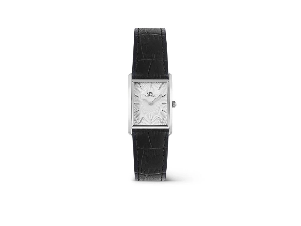 Unisex hodinky Daniel Wellington Bound přinášejí vytříbenou interpretaci klasického obdélníkového designu s jemným vintage nádechem. Elegantní model, který propojuje minimalistickou skandinávskou estetiku s nadčasovou hodinářskou inspirací a zaujme hranatým pouzdrem, bílým guilloché číselníkem a černým koženým řemínkem s krokodýlím vzorem.