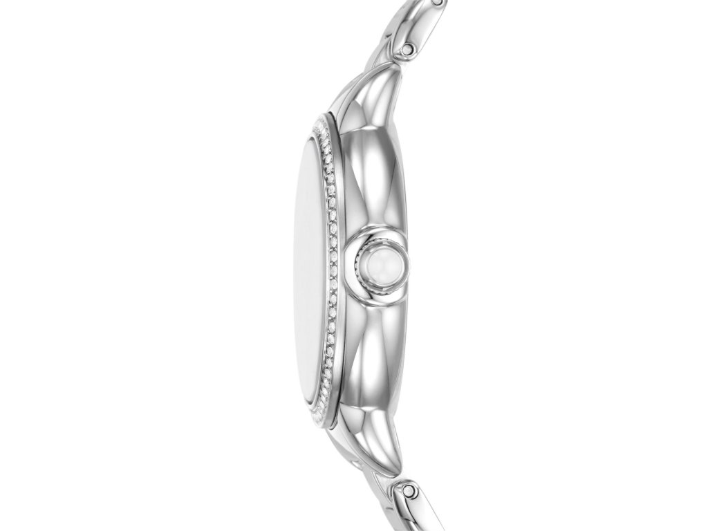 Model Mia AR11596 je vybaven růžově zlatým ocelovým tahem, kulatým pouzdrem v růžově zlatém tónu a perleťovým číselníkem o průměru 32 mm. Krystaly elegantně lemují číselník a dodávají mu jiskru. Celek doplňuje minerální sklo a spolehlivý strojek Quartz.