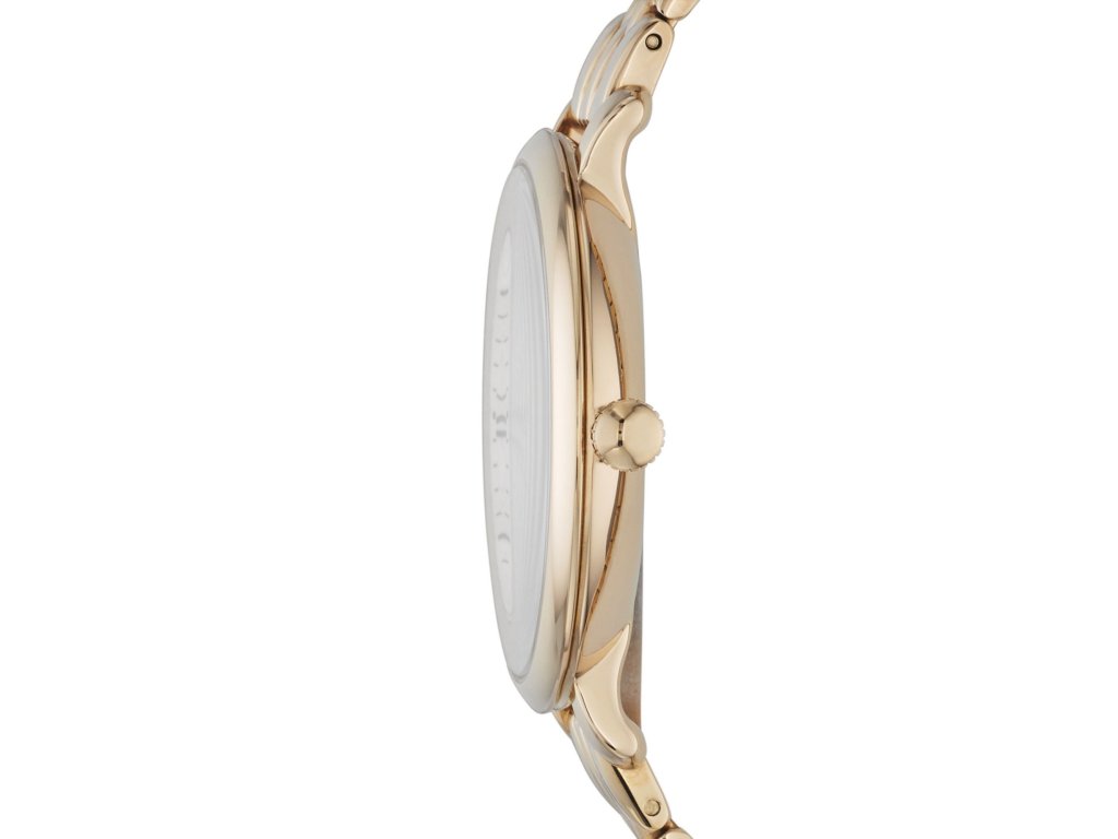 Model ES3434 je vybaven zlatým ocelovým tahem, kulatým pouzdrem ve zlatém tónu a béžovým číselníkem o průměru 36 mm. Design doplňuje praktická datumovka a čisté indexy, které zajišťují skvělou přehlednost. Celek chrání minerální sklo a pohání spolehlivý strojek Quartz.