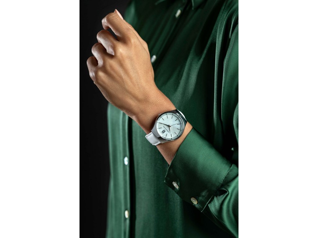 Dámské hodinky značky Marc Malone Ann White Leather mají odolný řemínek z bílé kůže. Světlý stříbrný číselník s indexy v podobě stříbrných tyčinek má jemně lesklou strukturu kamene a dodává tak hodinkám punc elegance a ženskosti. Číselník má průměr 38 mm a je chráněn minerálním sklíčkem. Řemínek je široký 18 mm, pohodlně nastavitelný díky sponě ve stříbrné barvě.Doplňkové parametry