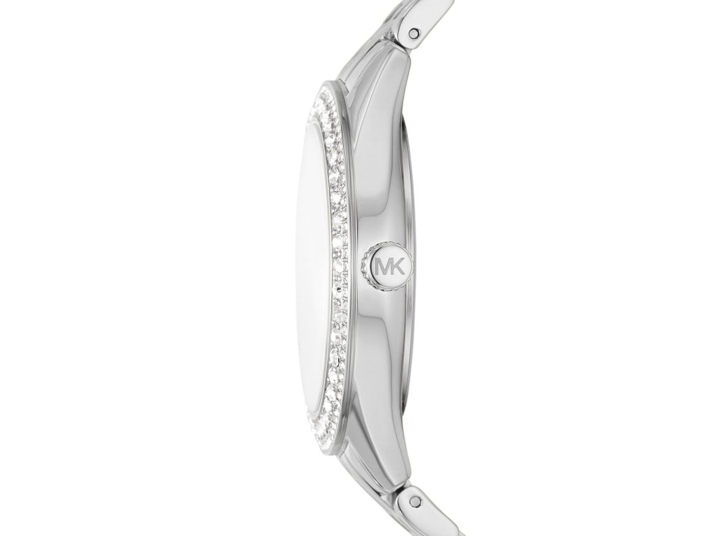 Zaujměte s těmito exkluzivními dámskými hodinkami od Michael Kors. Působivá kombinace bílého číselníku a krystalů dodává hodinkám nádech luxusu a jemné elegance. Tento módní kousek je dokonalým spojením vkusu, stylu a nápaditosti, který oceníte v práci, při jednání i na rande.