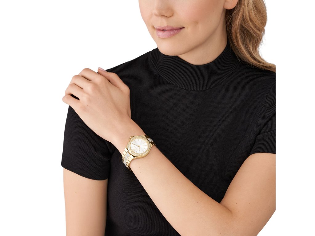 Dámské hodinky Lennox od Michael Kors přitáhnou k vašemu zápěstí nejeden pohled. Kombinace zlaté a bílé barvy s krystaly a jemnými liniemi zanechává velmi ženský a luxusní dojem. Ozdobte se tímto šperkem a projevte svoji vnitřní bohyni.
