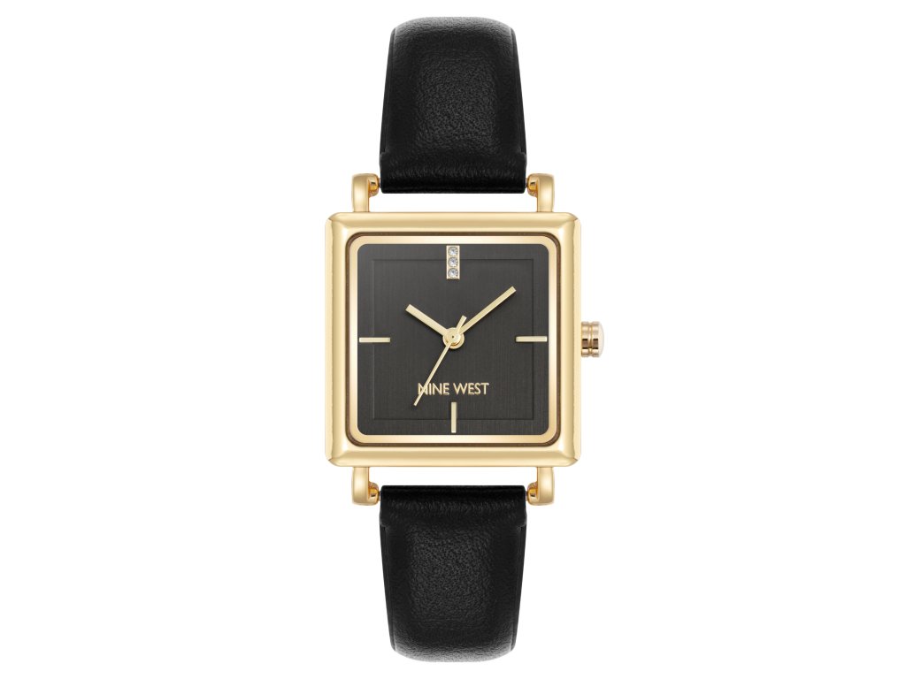Dámské hodinky od značky Nine West zaujmou moderní kombinací zlatého provedení a výrazného černého designu. Hranaté pouzdro působí módně a elegantně, zatímco černý číselník ozdobený krystaly dodává celému modelu sofistikovaný třpyt. Ideální volba pro ženy, které milují stylové doplňky s luxusním nádechem.