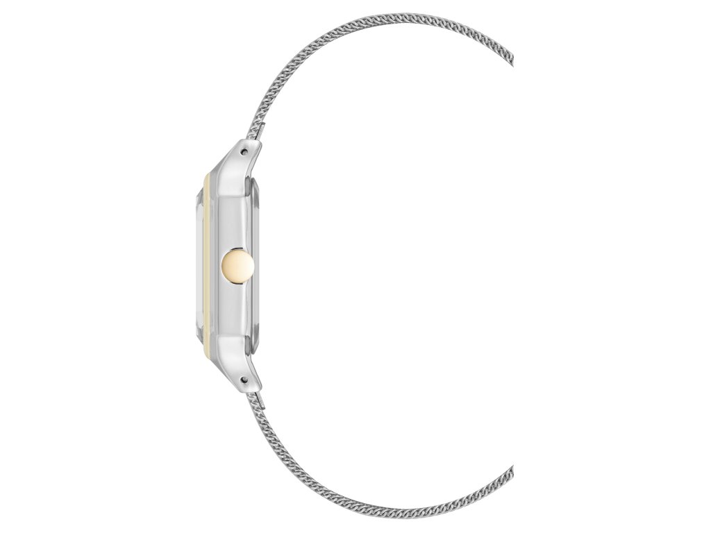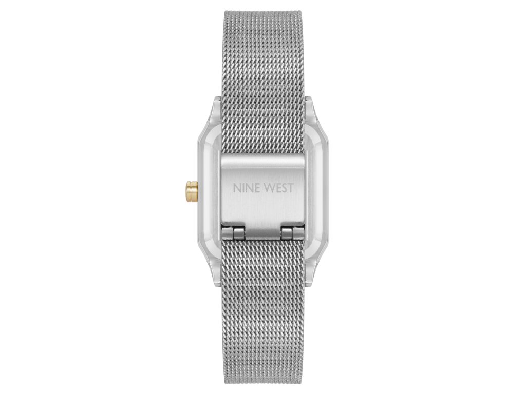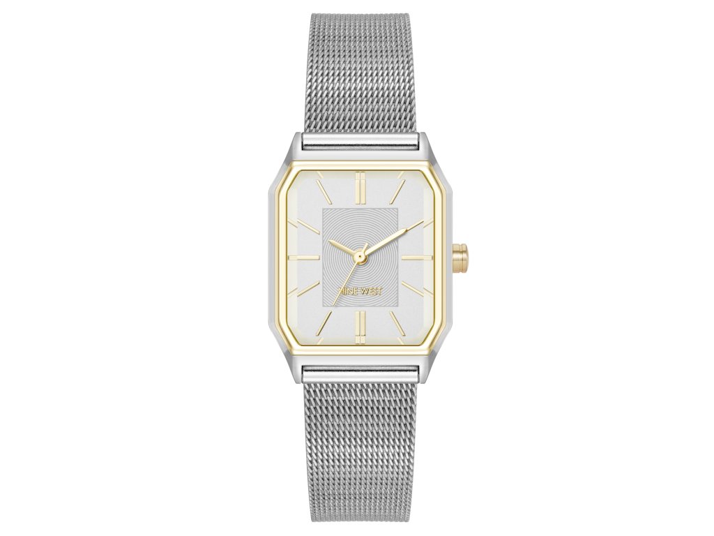 Dámské hodinky od značky Nine West osloví harmonickým propojením stříbrných a zlatých tónů, které působí elegantně a univerzálně. Hranaté pouzdro ve stříbrno-zlaté barvě dodává stylový kontrast, zatímco stříbrný číselník zachovává čistý, minimalistický vzhled.