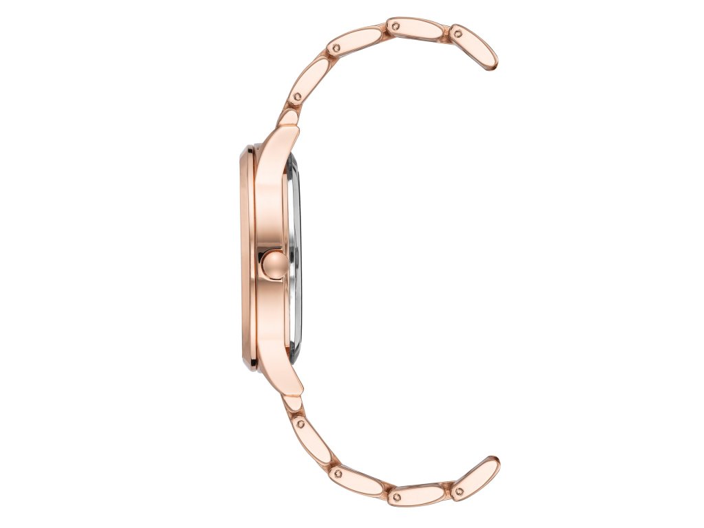 Výrazný design v jednotném růžovozlatém tónu a originální číselník s nápisem NINE WEST přinášejí hodinkám osobitý styl.