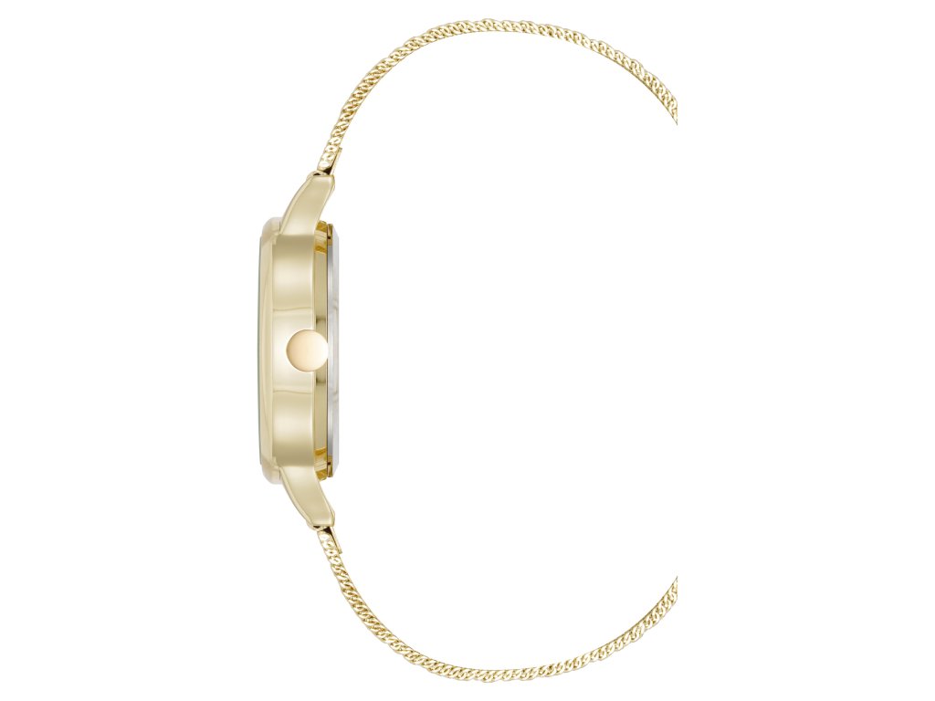 Model pohání spolehlivý strojek Quartz, který je usazen v kulatém pouzdře ve zlaté barvě. Ocelový tah v odpovídajícím zlatém tónu působí elegantně, pohodlně drží na ruce a skvěle ladí s celkovým vzhledem hodinek. Krystaly na číselníku dodávají jemný třpyt a z hodinek činí stylový šperk pro každou příležitost.
