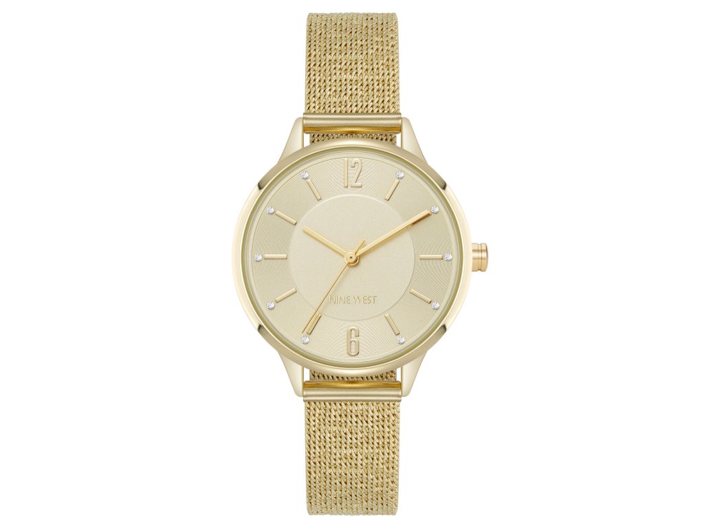 Dámské hodinky od značky Nine West přinášejí kombinaci elegance, jemného lesku a moderního stylu. Zlatý číselník doplněný třpytivými krystaly vytváří harmonický, ženský vzhled, který krásně podtrhne každodenní i slavnostní outfit. Ideální pro ženy, které milují sofistikované detaily a nadčasové módní doplňky.