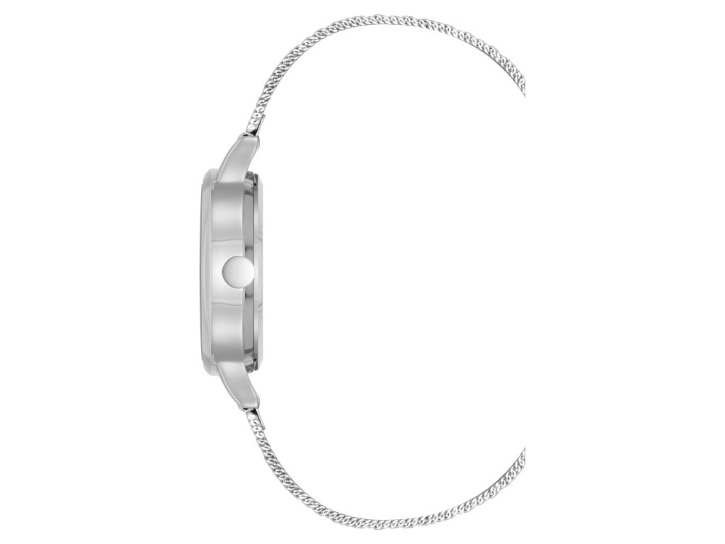 Dámské hodinky od značky Nine West osloví svou nadčasovou elegancí a čistým stříbrným provedením. Číselník ozdobený krystaly dodává hodinkám jemný lesk, který krásně rozzáří každodenní i formální outfit. Skvělá volba pro ženy, které preferují minimalistický, ale přesto působivý styl.