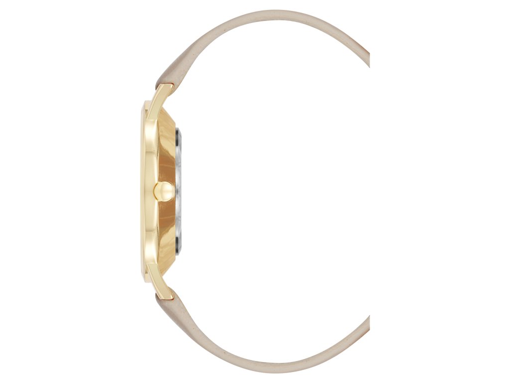 Model pohání přesný strojek Quartz uložený v kulatém pouzdře. Béžový řemínek z veganské kůže pohodlně sedí na zápěstí a přirozeně ladí s teplým zlatým odstínem. Bílý číselník dodává hodinkám elegantní čistotu a činí z nich skvělý doplněk pro každodenní outfity i jemně slavnostní příležitosti.