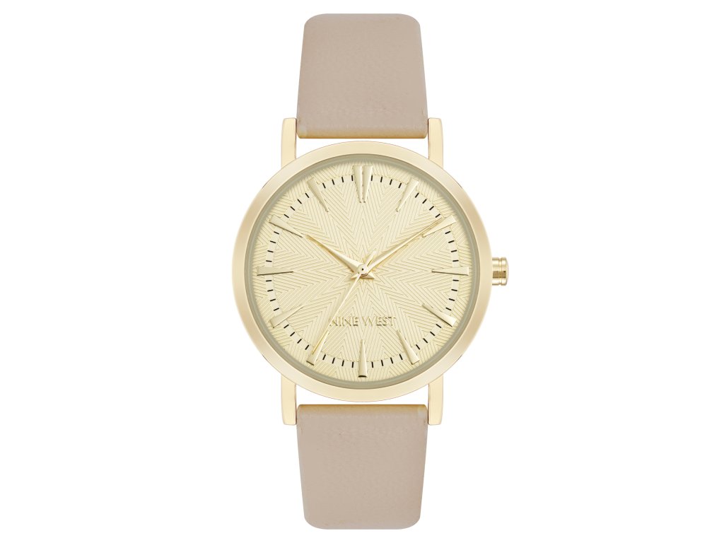 Dámské hodinky od značky Nine West zaujmou jemnou kombinací zlatého provedení a béžového řemínku, která působí elegantně a univerzálně. Kulaté pouzdro ve zlaté barvě dodává modelu ženský charakter, zatímco lesklý bílý číselník podtrhuje čistý a svěží vzhled. Ideální volba pro ženy, které mají rády doplňky v jemných, nadčasových tónech.