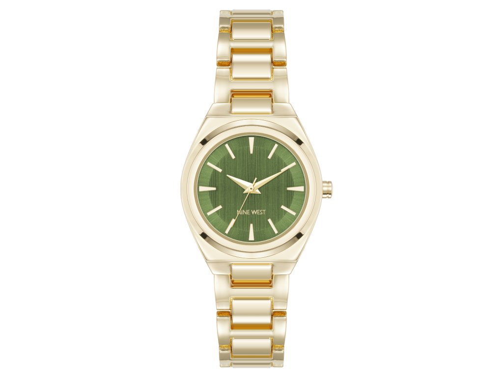 Dámské hodinky od značky Nine West spojují nadčasovou eleganci se svěžím barevným kontrastem. Zlaté pouzdro i ocelový tah působí luxusně a univerzálně, zatímco zelený číselník dodává celému modelu moderní výraz a originální charakter. Jsou ideální volbou pro ženy, které milují stylové doplňky s jemně výrazným prvkem.