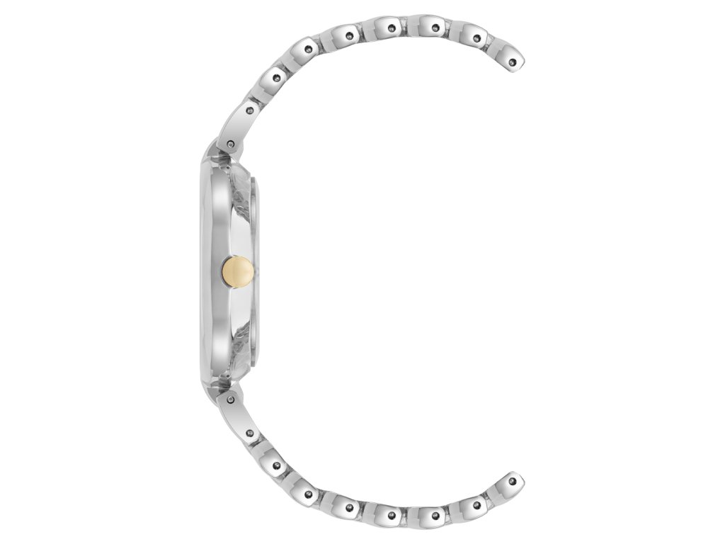 Model pohání přesný strojek Quartz uložený v kulatém pouzdře. Dvoubarevný ocelový tah ve stříbrno-zlatém provedení pohodlně sedí na zápěstí a dodává hodinkám elegantní kontrast. Číselník s krystaly podtrhuje šperkový charakter těchto hodinek, které se hodí jak pro každodenní nošení, tak pro slavnostní chvíle.